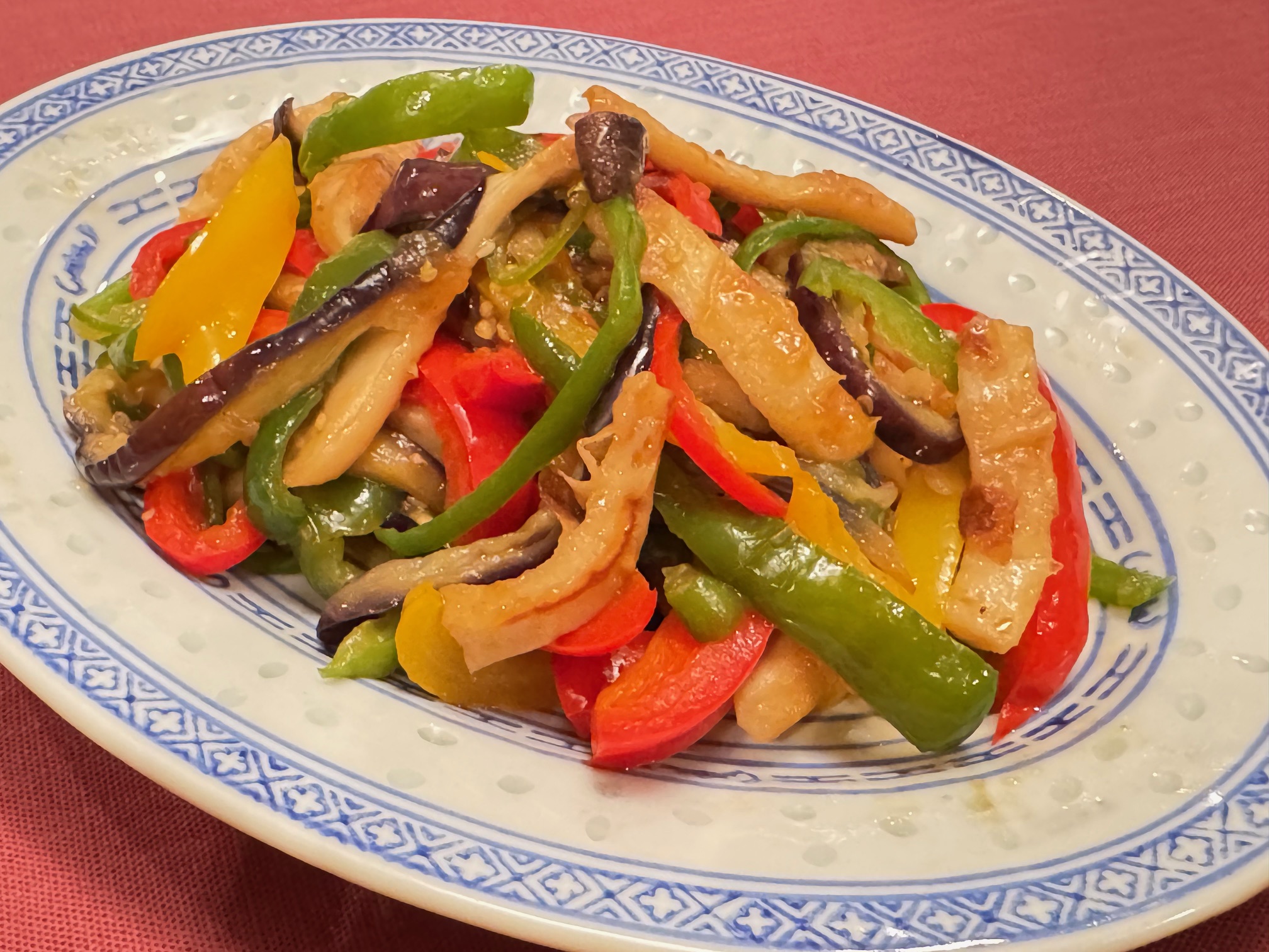 - ピーマン、パプリカ、ナスは細切り、エリンギは裂く。